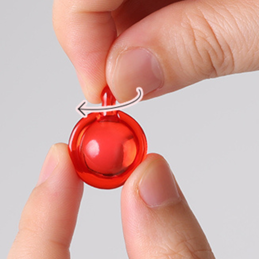 Hold the capsule like a mini key and gently twist the neck — it pops right open.